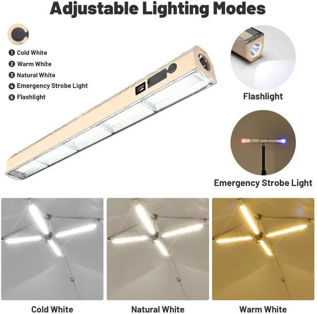 - Adjustable Lighting Modes - Set the mood for different themes with 3 distinct color temperature settings: Cold White, Warm White, and Natural White. Plus, the added red/blue strobe and flashlight functions meet your needs for emergency lighting