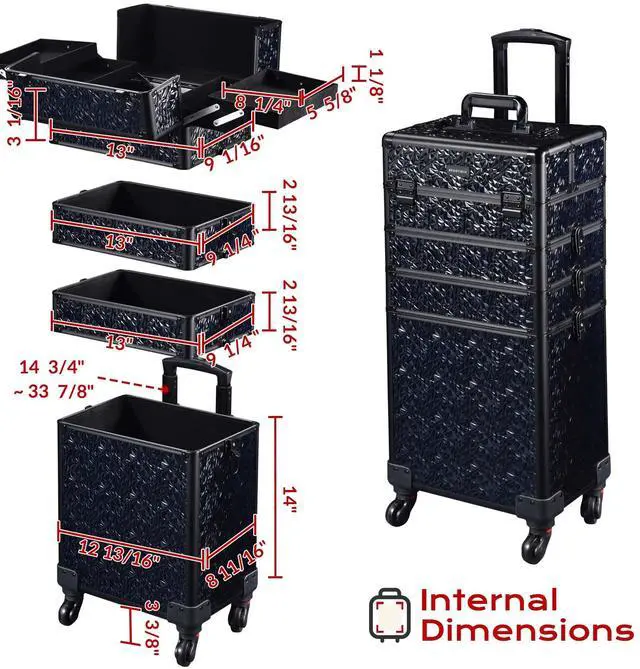 - 4-in-1 Customizable Structure - 4 Sections allow free combination, can be combined into 1 large train case or used as a 2 to 4-layered trolley; The 2nd and 3rd section for providing 2-layer space to store lipsticks, mascaras, palettes, etc., and the 4th section is a large space for large tools, hair dryers or irons