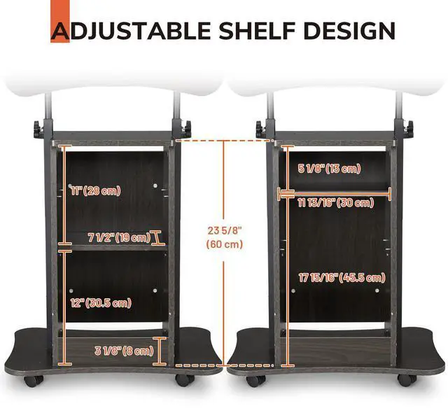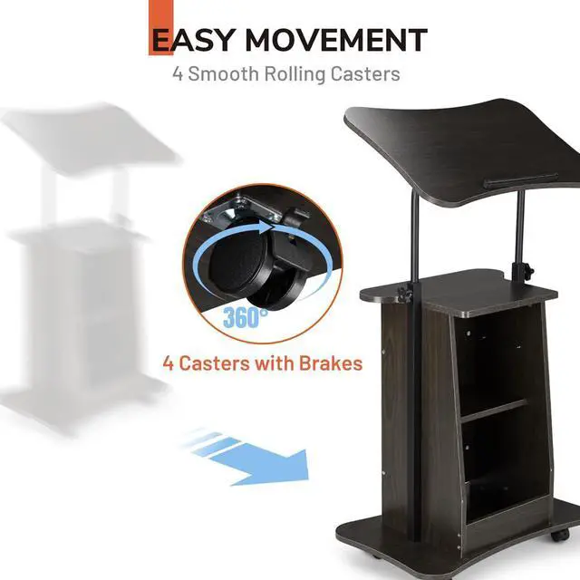 - 4 Lockable Swivel Wheels - Equipped with 4 smooth-rolling wheels that all have brakes for added stability and safety, this laptop stand allows you to effortlessly move your laptop from room to room or around the office