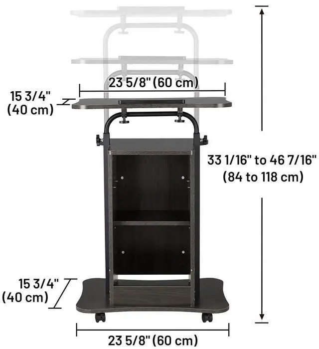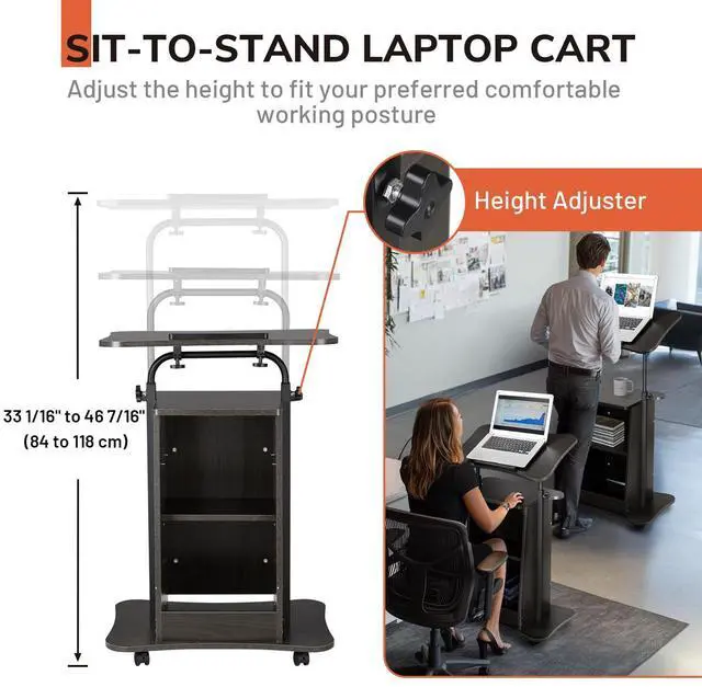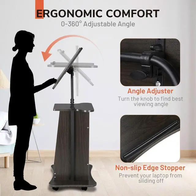 - Adjustable Laptop Stand - 23 5/8" x 15 3/4" x 46 7/16" Rolling Laptop Desk is designed for ultimate ergonomic comfort, allowing you to easily customize the height and desk angle to suit your working needs. Whether you're sitting or standing, you can find the perfect position to reduce neck and back strain