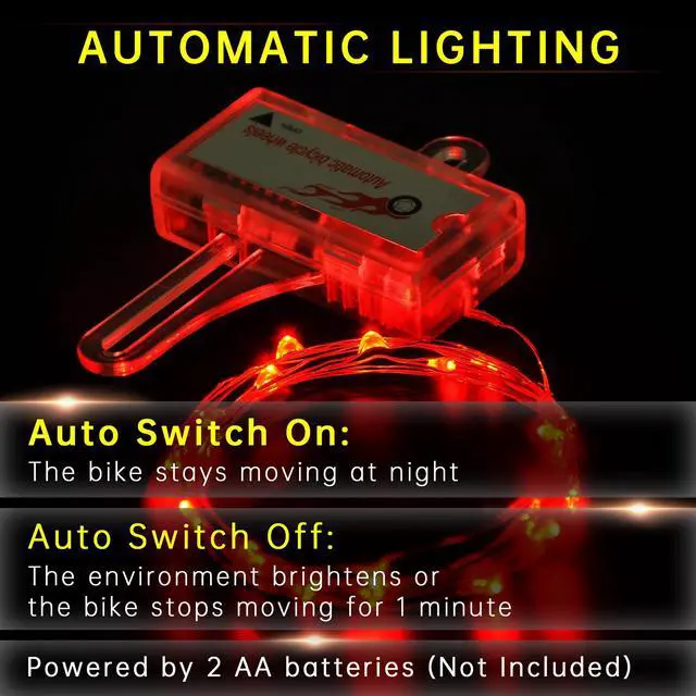- Automatic Lighting - With built-in sensor, it automatically switches on at night when the bike stays moving and switches off when the environment brightens or you're stationary for 1 minute, saving energy and convenience