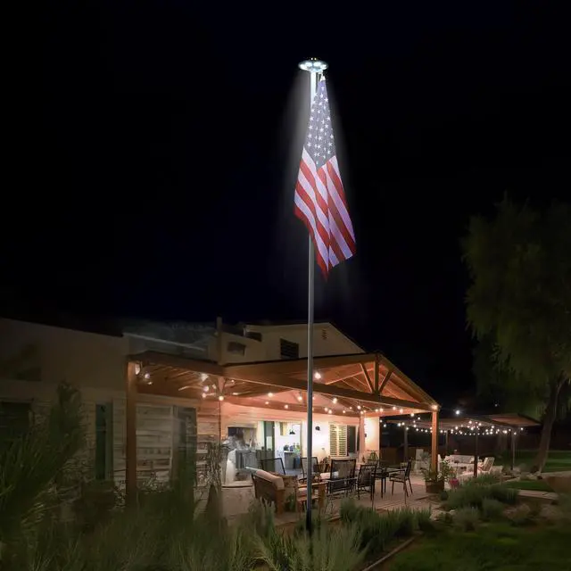 - Universal Fit - Compatible with most 15 ft to 30 ft flagpoles up to 11/16" in diameter, proudly displaying your patriotism all day and all night; Perfectly match our flagpole models, please reach out to our Customer Service for help