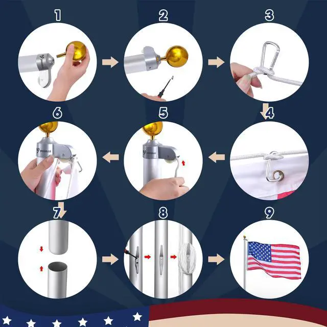 - Easy installation: Attach 6 sections tightly, allowing you to raise and lower flag by pulling the halyard rope easily