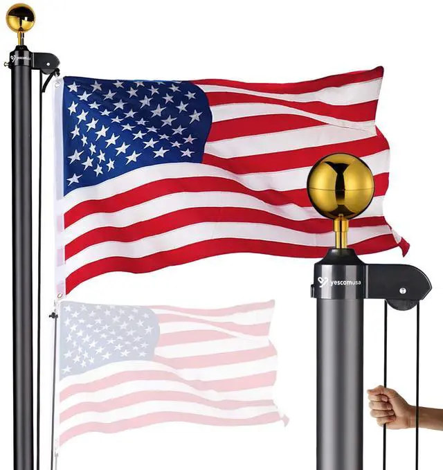 - What You Get: 1-Year Warranty for quality assurance; Unpack to use, includes flag poles, ball finial, American National Flag, carabiners, screws, screwdriver, rope and PVC sleeve for protecting the bottom of the pole against corrosion