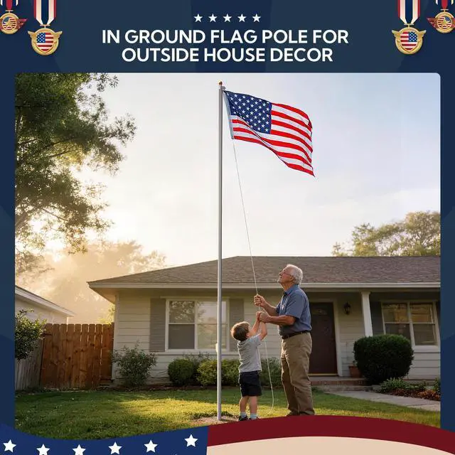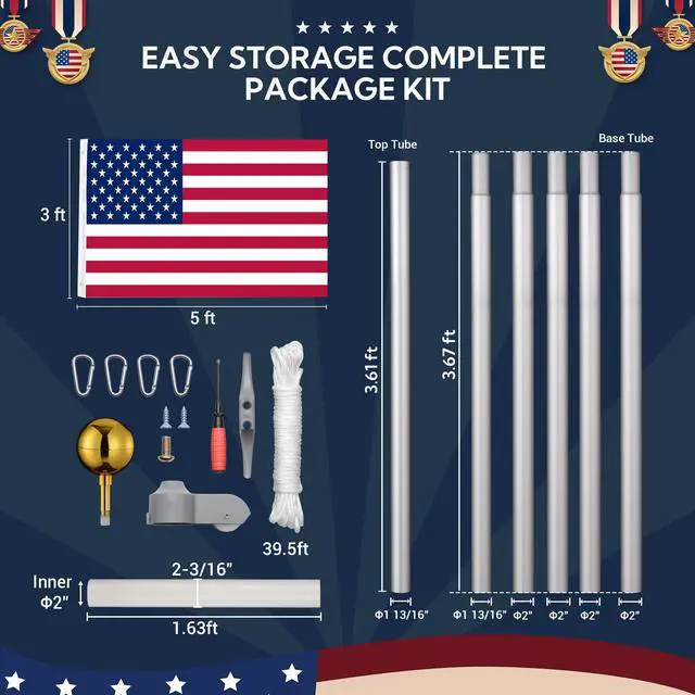 - What You Get - 1-Year Warranty for quality assurance; Unpack to use, includes flag poles, ball finial, American National Flag, carabiners, screws, screwdriver, rope and PVC sleeve for protecting the bottom of the pole against corrosion