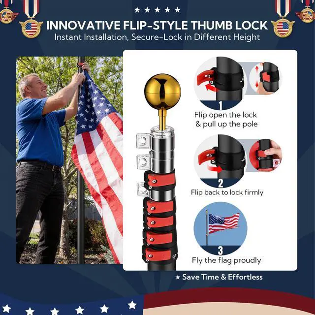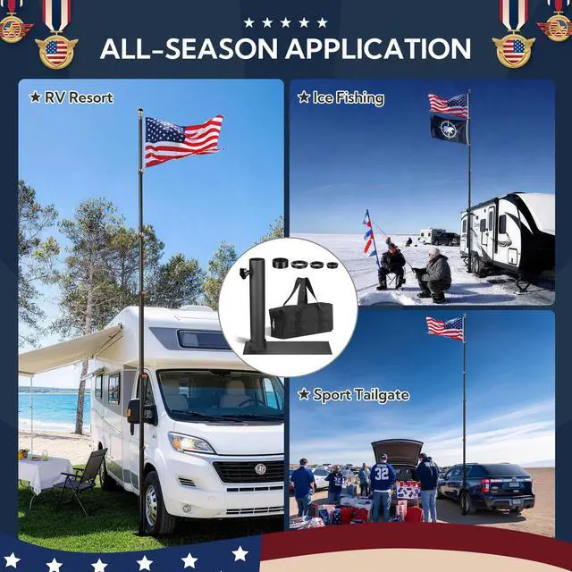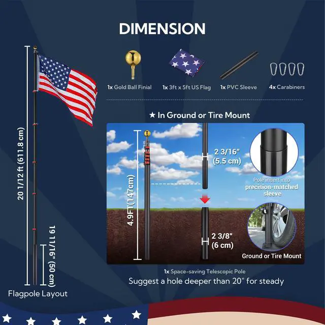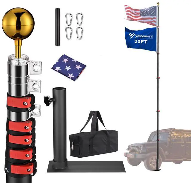 - Fly 2 Flags & Tangle free - 20 Ft Aluminum Telescoping Flag Pole Kit features 1st and 2nd section which can hold 2pcs of 3x5 ft flags; Equipped with a top rotating shaft for allowing preventing the flags from tangling around the flagpole