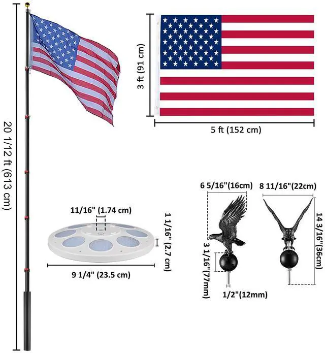 - Flagpole Adjustment Height 4 1/2 ft to 19 3/4 ft