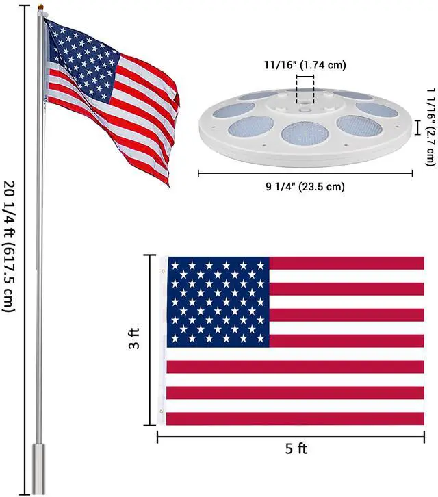 - Solar Flag Pole Light with 136 cool white LEDs emits 680 lumens of bright light, lighting up your flag & flag pole ornaments in the darkness for eye-catching decoration
