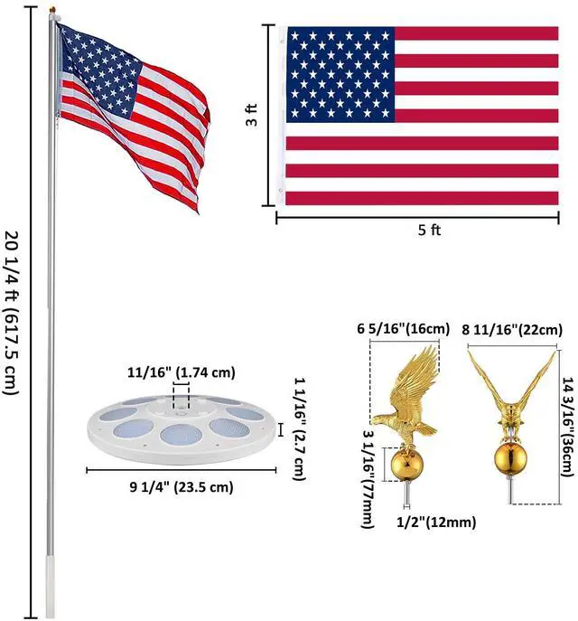 - Vintage Appearance - Eye-catching eagle finial with a gold ball underneath, as the emblem of the US, symbolizes proud and independence of this great country to show your patriotism, and glossy gold color to decorate national flag for a more particular and exquisite look, making it stand out in outdoor space