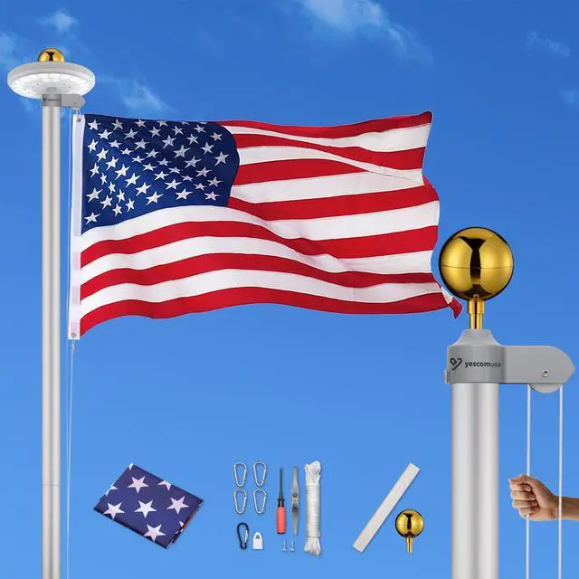 - Durable Construction - Aluminum Sectional Flagpole Kit with a golden top finial, heavy duty aluminum tube features durability and rust proofing, strong enough for outdoor using