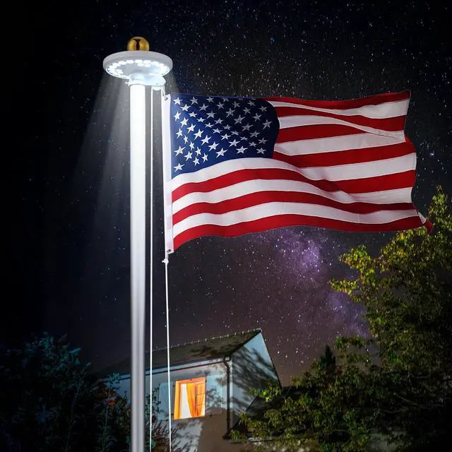 - Light Up Your American Pride - Solar Powered Flag Pole Light with 26 cool white LEDs ensures your flying flag is well-lit at night after full charge, allowing you to shine your patriotism all night long for eye-catching decoration at your backyard or front porch