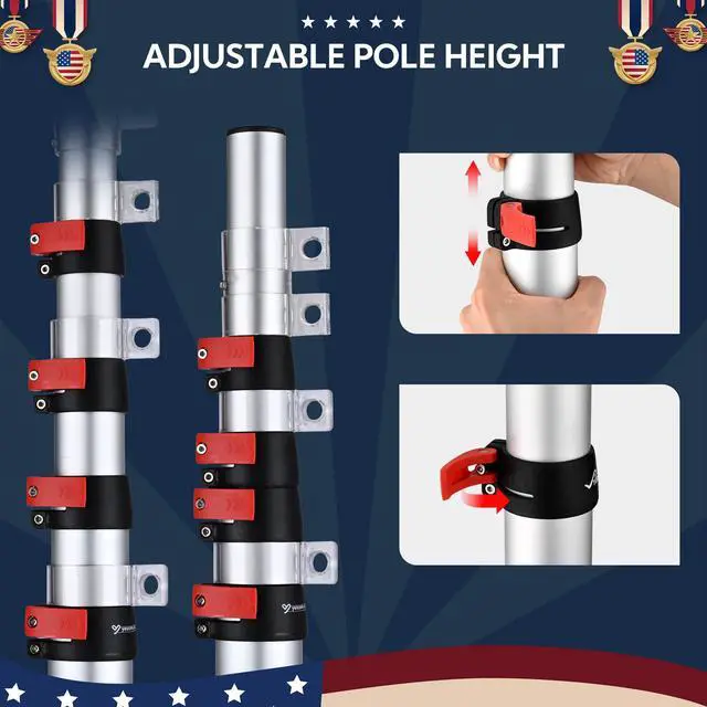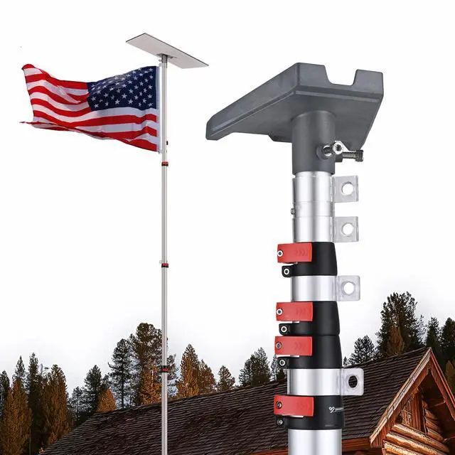 - Solid Construction - Made of monobloc anodized aluminum, the pole provides long lifespan, outstanding sturdiness, and rust resistance, making it tough enough for outdoor use; The 1st and 2nd section can hold 2pcs of 3x5 ft flags, easy to fly your national flag and team flag at the same time in the campsite