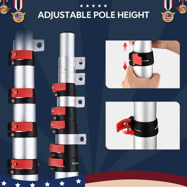 - Solid Construction - Made of monobloc anodized aluminum, the pole provides long lifespan, sturdiness, and rust resistance, making it tough enough for outdoor use; The 1st and 2nd section can hold 2pcs of 3x5 ft flags for flying national flag & team flag at the same time