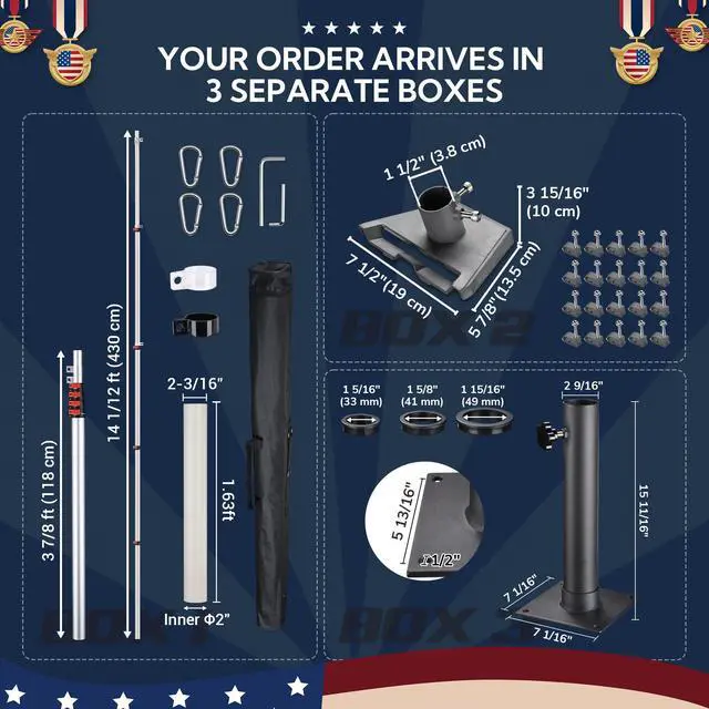 - Fly 2 Flags - Can hold 2pcs of 3x5 ft flags, easy to fly your national flag and team flag at the same time