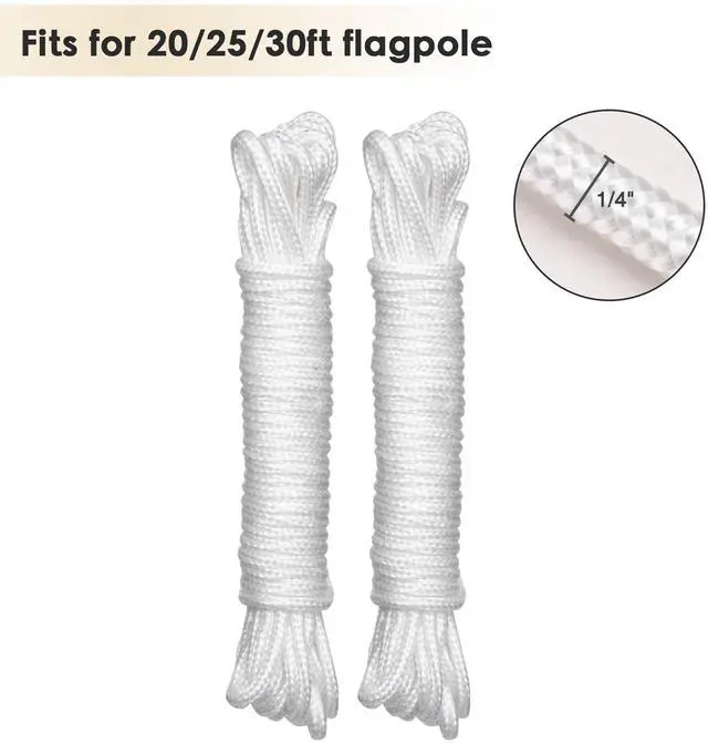 - Durable & Anti-rust - Comes with 4 sturdy aluminum carabiners to tie 1 or 2 flags to the rope, 2 pcs 50Ft durable nylon rope which fits flagpole length of up to 30ft, along with a plastic topper, pulley truck and cleat which are durable and resistant to rust and wear, ideal for prolonged outdoor usage