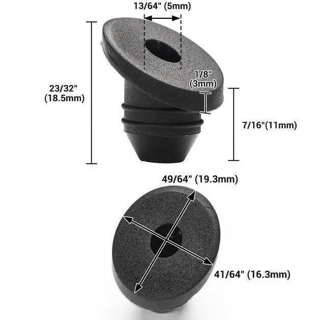 - Compatibility & Size - These grommets are designed to fit 1/8", 5/32", and 3/16" cable railing posts, with a length of 23/32" and a flange diameter of 25/32". Compatible with most 2"x2" and 4"x4" metal posts with a hole diameter range of 13/32" to 15/32"