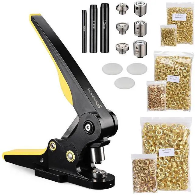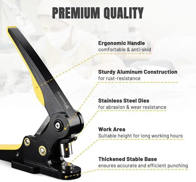 - Durable Dies - Stainless steel dies withstand continuous punching for extended lifespan, properly spaced for easy grommet/washer placement & quick switch between die sets.
