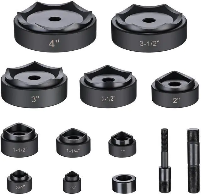 - 10 Dies & Punches Sizes: 1/2", 3/4", 1", 1 1/4", 1-1/2", 2", 2-1/2", 3", 3-1/2", 4"