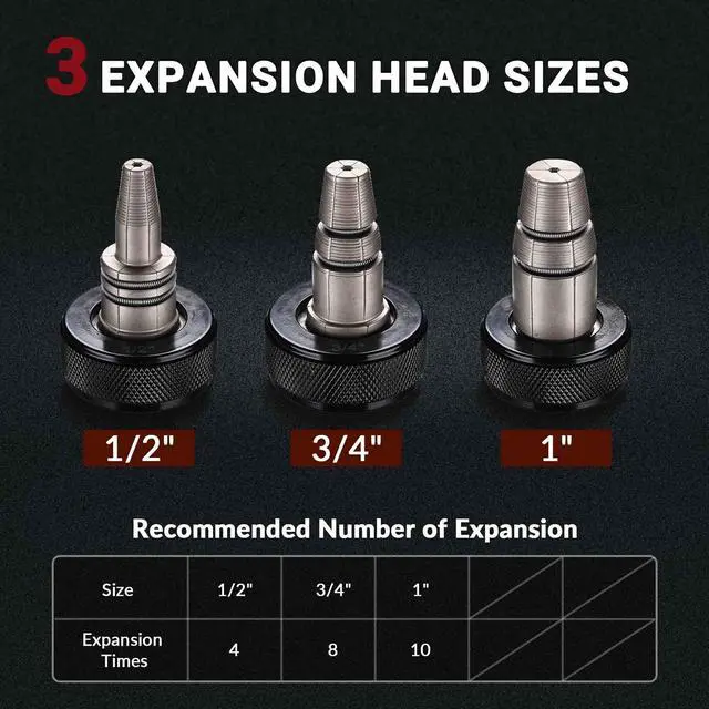 - Expansion Head Sizes 1/2", 3/4", 1"