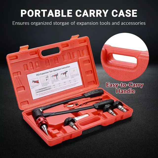 - Great Compatibility - This kit includes 1pc tube expander, 3pcs expansion heads (1/2", 3/4", 1"), 1pc tube cutter, 1pc grease, and 1pc carrying case, designed for expanding PEX tubes, aluminum plastic tubes and expansion ring to make a firm connection with ASTM F1960 fitting, ideal for plumbing installation & maintenance
