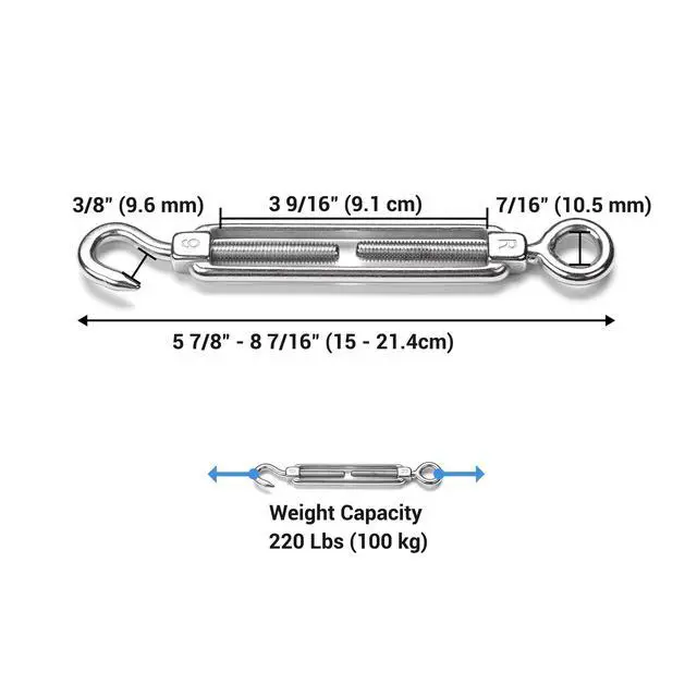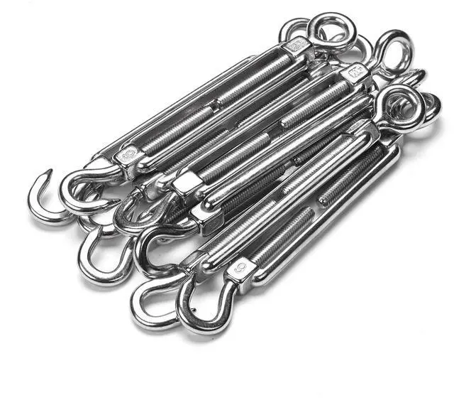- Quick & Easy Attachment - Simplify your setup with the convenient hook and eye design. These turnbuckles are easy to attach and adjust, making them suitable for creating clean and professional-looking cable runs in any outdoor setting