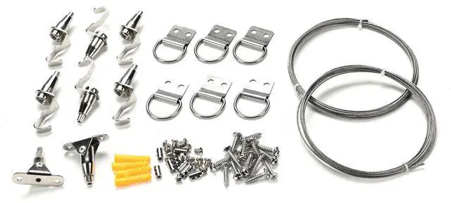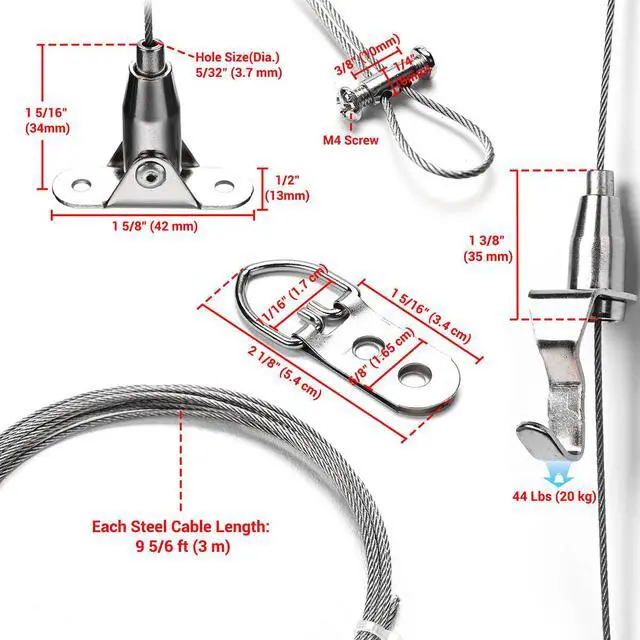 - Complete Professional-Grade Kit - Yescom Picture Hanging Wire Kit includes everything you need for a secure, professional installation: 2pcs steel cables, 6pcs S-hooks, 2pcs ceiling mounts, 6pcs D-rings, and 8pcs wire rope clamps, ensuring flawless results without the guesswork