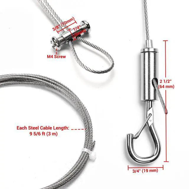 - Complete Professional-Grade Kit - Yescom Inflatable Mirror Ball Hanging Wire Kit includes 3pcs steel cables, 6pcs wire rope hangers, 1pc screw eye hook, 3pcs wire rope clamps, and 1pc wall anchor, one full set for everything you need to safely and professionally suspend an inflatable mirror ball without hassle