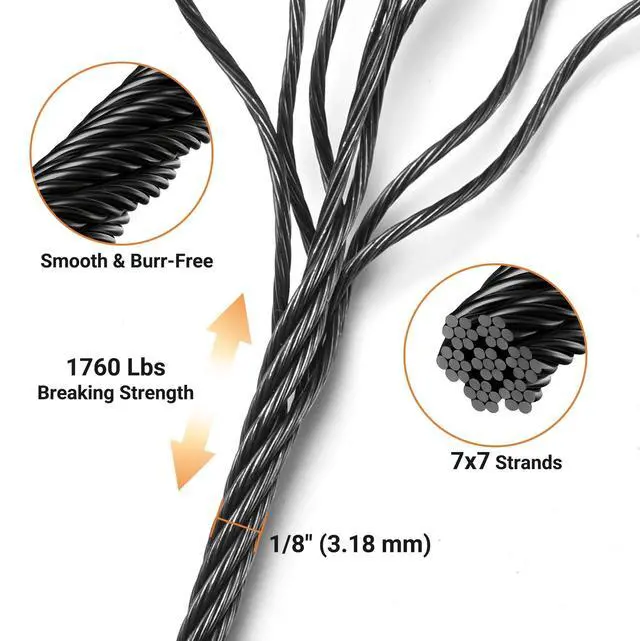 - Engineered for Maximum Strength - Featuring a robust 7x7 aircraft-grade strand construction, this wire rope delivers an impressive 1760Lbs break strength. It cuts cleanly without fraying and has a smooth, burr-free finish, providing a secure and snag-free barrier for the hanging items