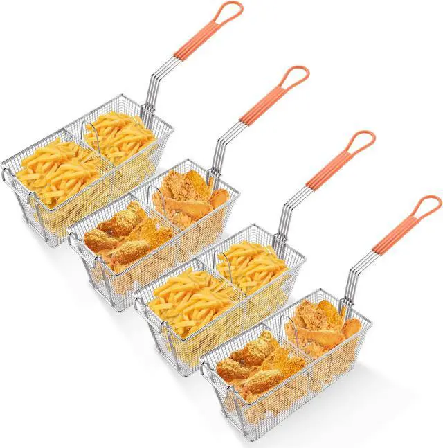 - Large Capacity - 4 Pieces Deep Fryer Baskets, each featuring a large size of 13" x 6 5/16" x 5 7/8" for holding up to 4.4 Lbs French fries, perfect for storing all your foods in one place, helping you to avoid repetitive fishing around or over-frying of individual food, ideal for both commercial and home use