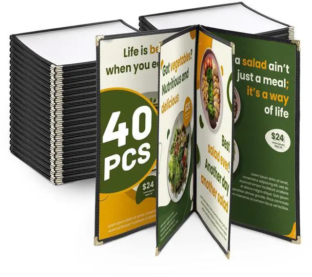 - Wide Application - WeChef 40 Packs of 11"x8 1/2" WeChef Menu Cover includes 40 pieces of booklet-style menu Covers with a total of 8 windows to display menu pages, suitable for holding 11"x8 1/2" letter-sized paper menus displaying daily specials, drink selections, or dessert options