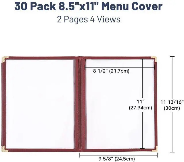 - Multifunctional - This 30pcs 11"x8 1/2" Menu Cover includes 30 pieces of booklet-style menu Covers with a total of 4 windows to display menu pages, perfect for holding 11"x8 1/2" letter-sized paper menus displaying daily specials, drink selections, or dessert options, ideal for use in restaurants, hotels, bars, kitchen, cafe or wedding venues