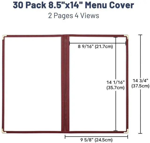 - Multifunctional - WeChef 30pcs 14"x8 1/2" Menu Cover includes 30 pieces of booklet-style menu Covers with a total of 4 windows to display menu pages, perfect for holding 14"x8 1/2" letter-sized paper menus displaying daily specials, drink selections, or dessert options, ideal for use in restaurants, hotels, bars, kitchen, cafe or wedding venues