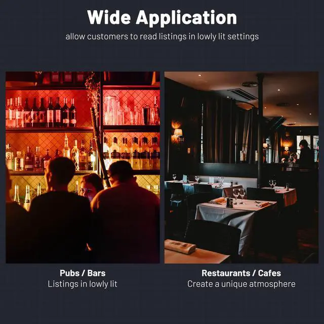 - LED Backlit Check Presenter - 9"x5"x1" LED Backlit Check Presenter comes with an LED backlit board, which automatically lights up when It's opened, and goes off when closed or unfolded over 180 degrees, perfect for enabling customerso read their bill and avoid mistakes in dim and low-light environments, such as posh restaurants, bars, hotels