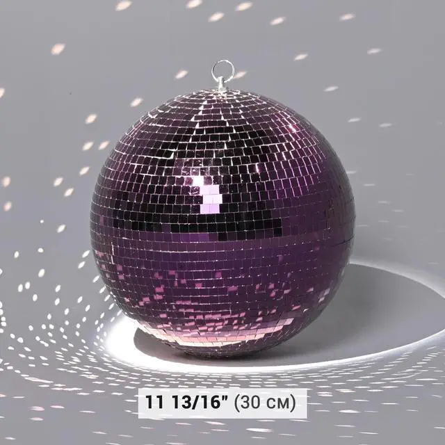 - Disco Fashion Purple - 12" Large Disco Mirror Ball covered with purple mirror tiles, casts a captivating violet-colored light, creating a magical and unforgettable atmosphere for your party or wedding