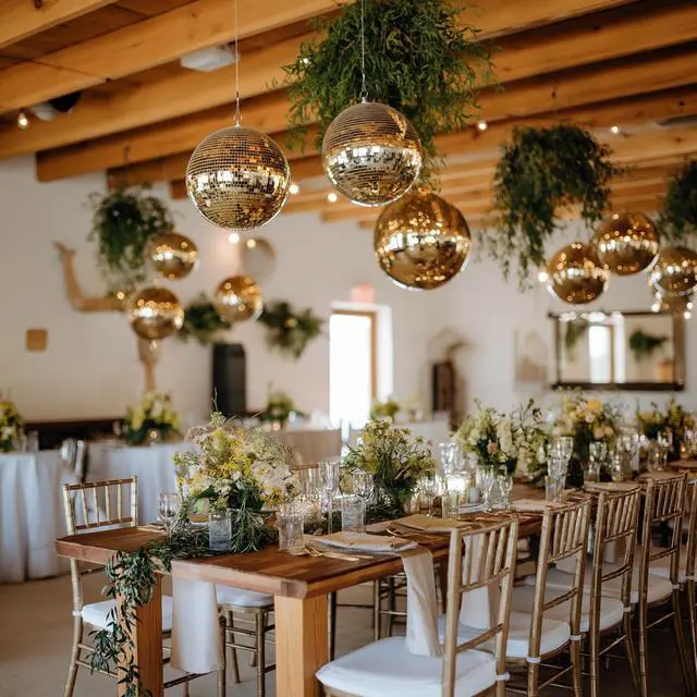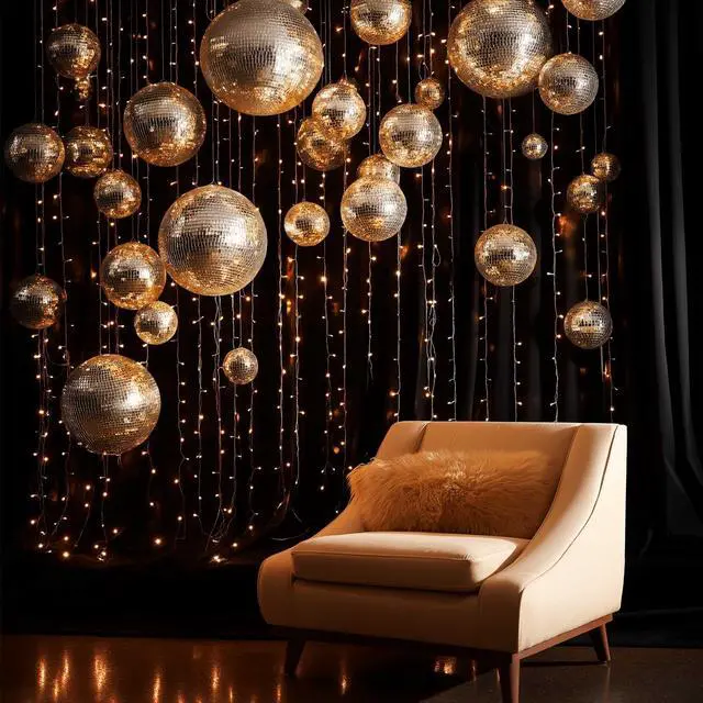 - Golden Disco Fever - 16" Large Disco Mirror Ball covered with golden mirror tiles, casts a warm, radiant glow for shimmering display, creating a retro 70s vibe that will ignite your party or wedding
