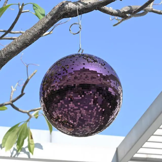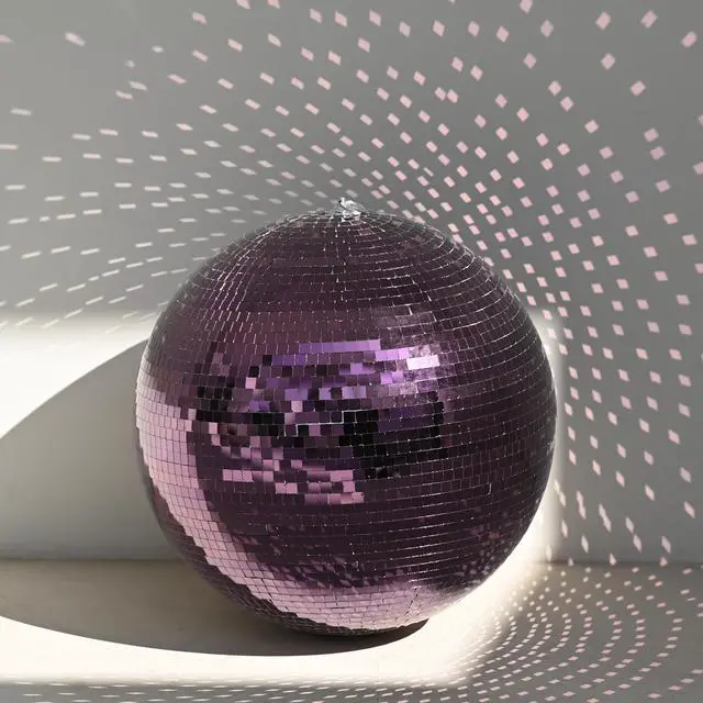 - Disco Fashion Purple - 20" Large Disco Mirror Ball covered with purple mirror tiles, casts a captivating violet-colored light, creating a magical and unforgettable atmosphere for your party or wedding