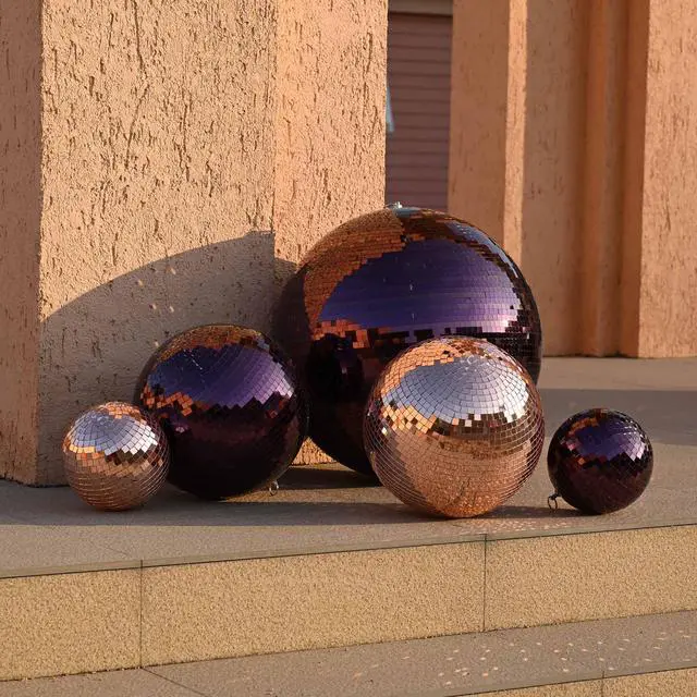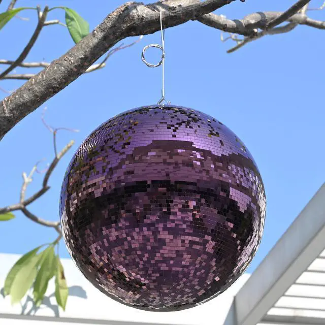 - Disco Fashion Purple - 24" Large Disco Mirror Ball covered with purple mirror tiles, casts a captivating violet-colored light, creating a magical and unforgettable atmosphere for your party or wedding