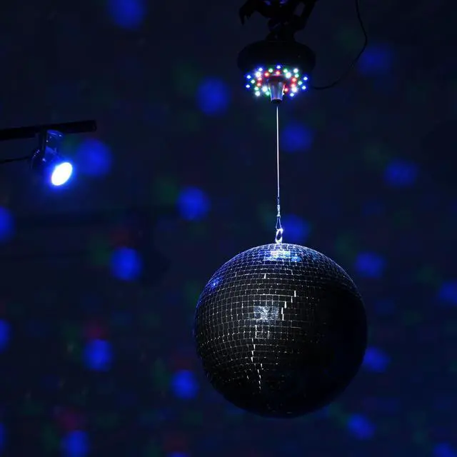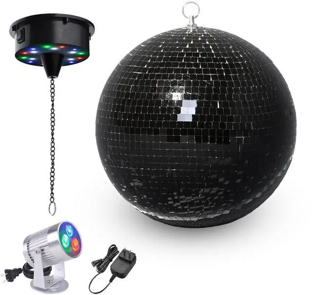 - Disco Ball Kit - Yescom Mirror Ball kit comes with a 12 black mirror ball, a RGB spotlight, and a rotating motor for creating a dynamic and mesmerizing display for bars, nightclubs, etc.