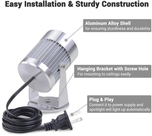 - Durability & Easy Operation - The spotlight features aluminum alloy construction for rust resistance, better heat dissipation and durability, along with Plug and play design for easy operation