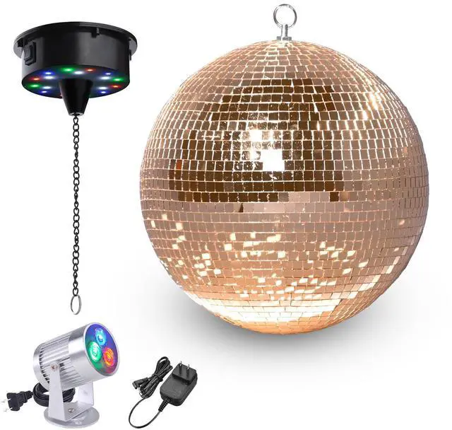 - Disco Ball Kit - Yescom Mirror Ball kit comes with a 12 rose gold mirror ball, a RGB spotlight, and a rotating motor for creating a dynamic and mesmerizing display for bars, nightclubs, etc.