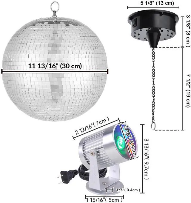 - 6 RPM Rotating Motor for Disco Ball features 18 LED beads in 4 colors to cast bright-colored lights on the mirror disco ball for colorful & glittering lighting effects