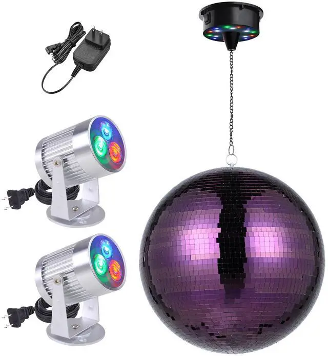 - Disco Ball Kit - Yescom Mirror Ball kit comes with a 16 purple mirror ball, 2 RGB spotlights, and a rotating motor for creating a dynamic and mesmerizing display for bars, nightclubs, etc.
