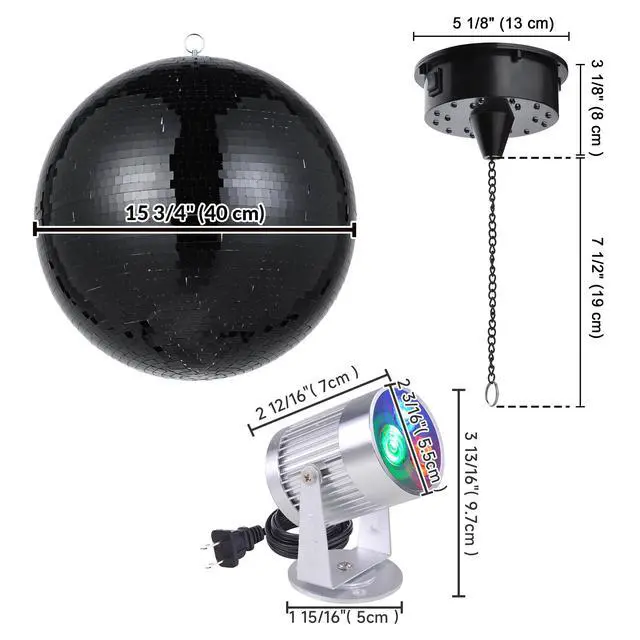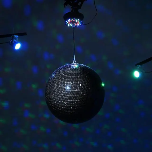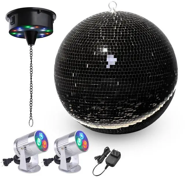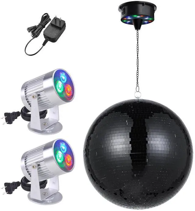 - Disco Ball Kit - Yescom Mirror Ball kit comes with a 16 black mirror ball, 2 RGB spotlights, and a rotating motor for creating a dynamic and mesmerizing display for bars, nightclubs, etc.