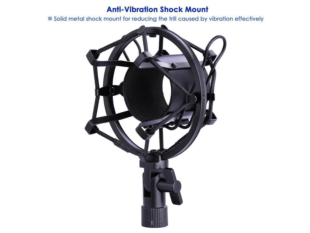 Pro Condenser Microphone w/ Shock Mount Arm Stand Pop Filter For Recording Studio Stage