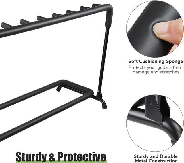 - For All Guitar Types - 7-holder Guitar Stand can hold up to 7 guitars and it works as a universal guitar rack that can hold up all kinds of guitars including electric, bass, acoustic, and more while at home, studio, stage or anywhere you are