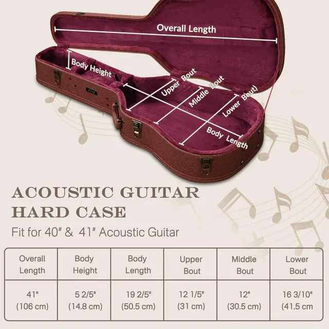 - Acoustic Guitar Hard Case makes a statement with exquisite Rococo-inspired artistry. The embossed, laser-cut leather design in Burnt Sienna shade offers a revolutionary visual and tactile experience, paired with antique bronze latches for a stunning, vintage-core look