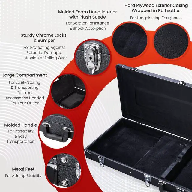 - Specially Designed - 41 1/4" x 14 7/16" x 3 15/16" Electric Guitar Case features hard plywood construction for better protection and is specially designed and crafted to fit most electric guitars perfectly