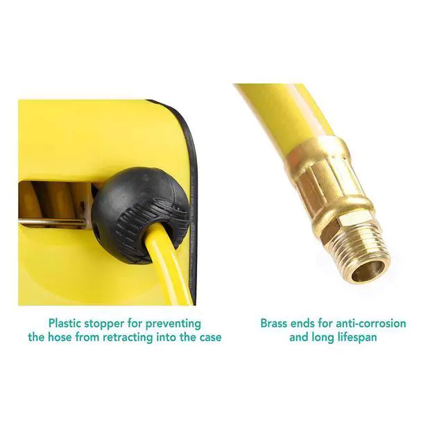 - User-Friendly - Comes with a plastic stopper for preventing the hose from fully retracting into the case, along with a 180-degree swivel mounting bracket, allowing you to use it at different angles smoothly