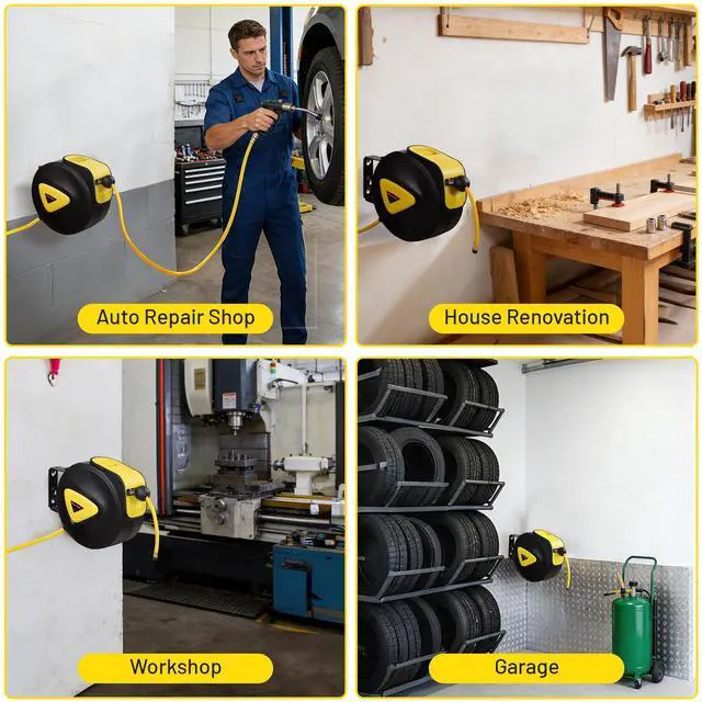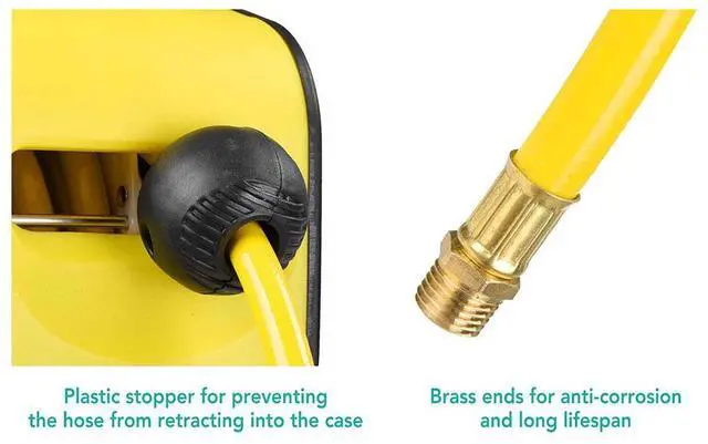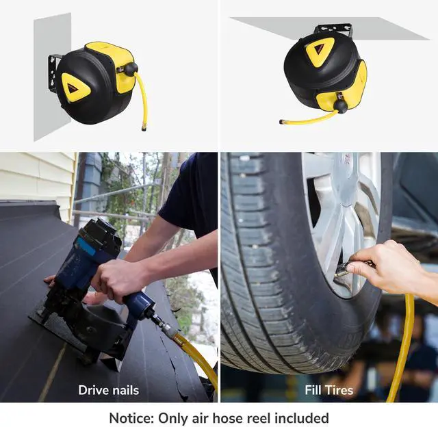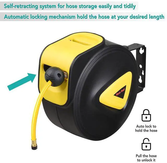 - Automatic Locking Mechanism - 33ft portable auto rewind air hose reel can hold the hose at your desired length for convenient use, unlocking by pulling the hose easily