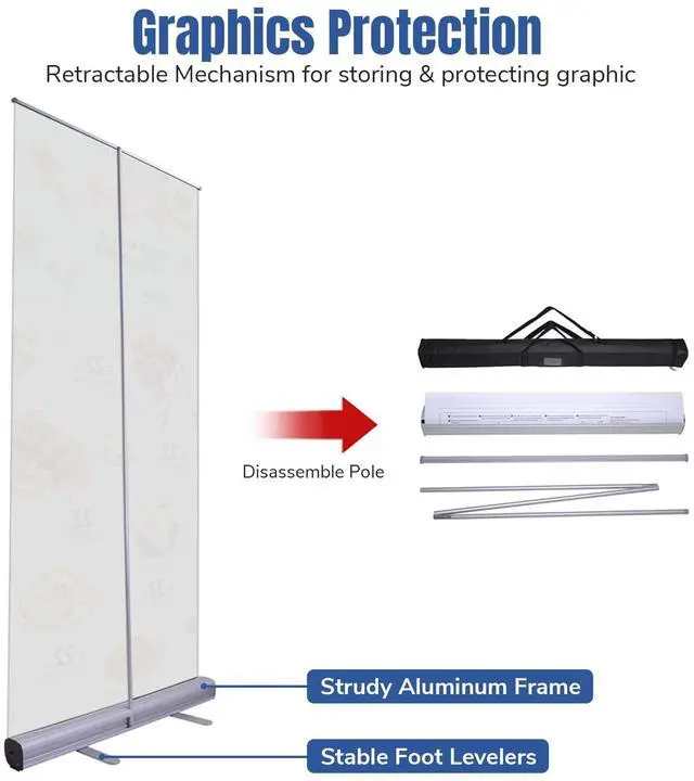 - Graphics Protection & Replacement - Graphics can be retracted into base for storage and safe protection, no worry of scratches and wears during transportation, convenient for banner stand reposition; Poster replacements available to update graphics